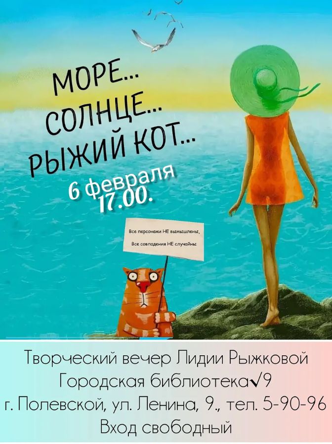 Друзья! Приглашаем всех на творческий вечер Лидии Рыжковой, который состоится в Городской библиотеке №9 6 февраля 2026 года. Начало в 17:00. Вход свободный. Подробнее читайте в новости)