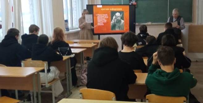 Для нескольких групп ПМТ им. В.И. Назарова, работники Городской библиотеки №9 провели познавательное мероприятие по творчеству М. Горького «Человек – это звучит гордо».