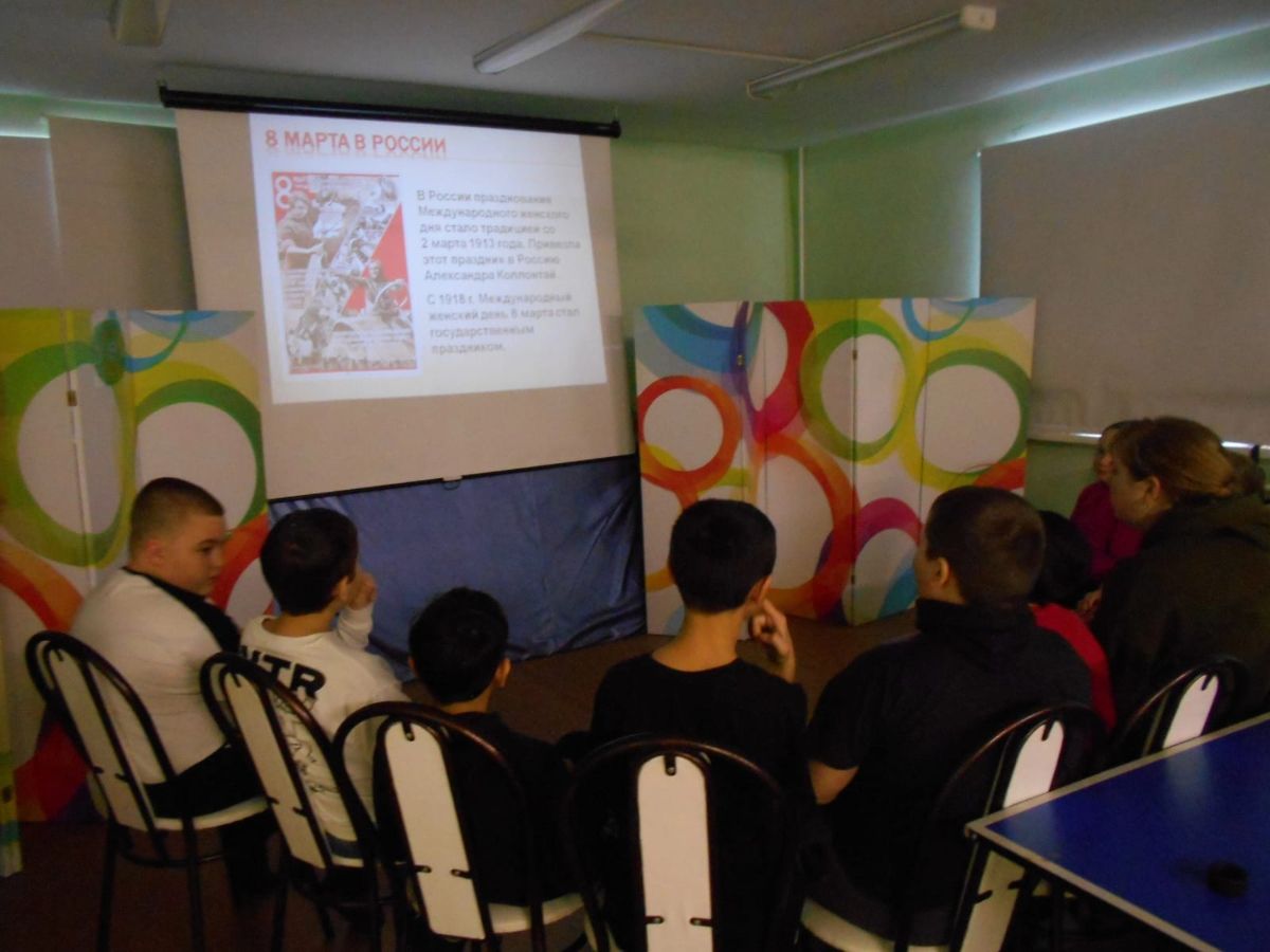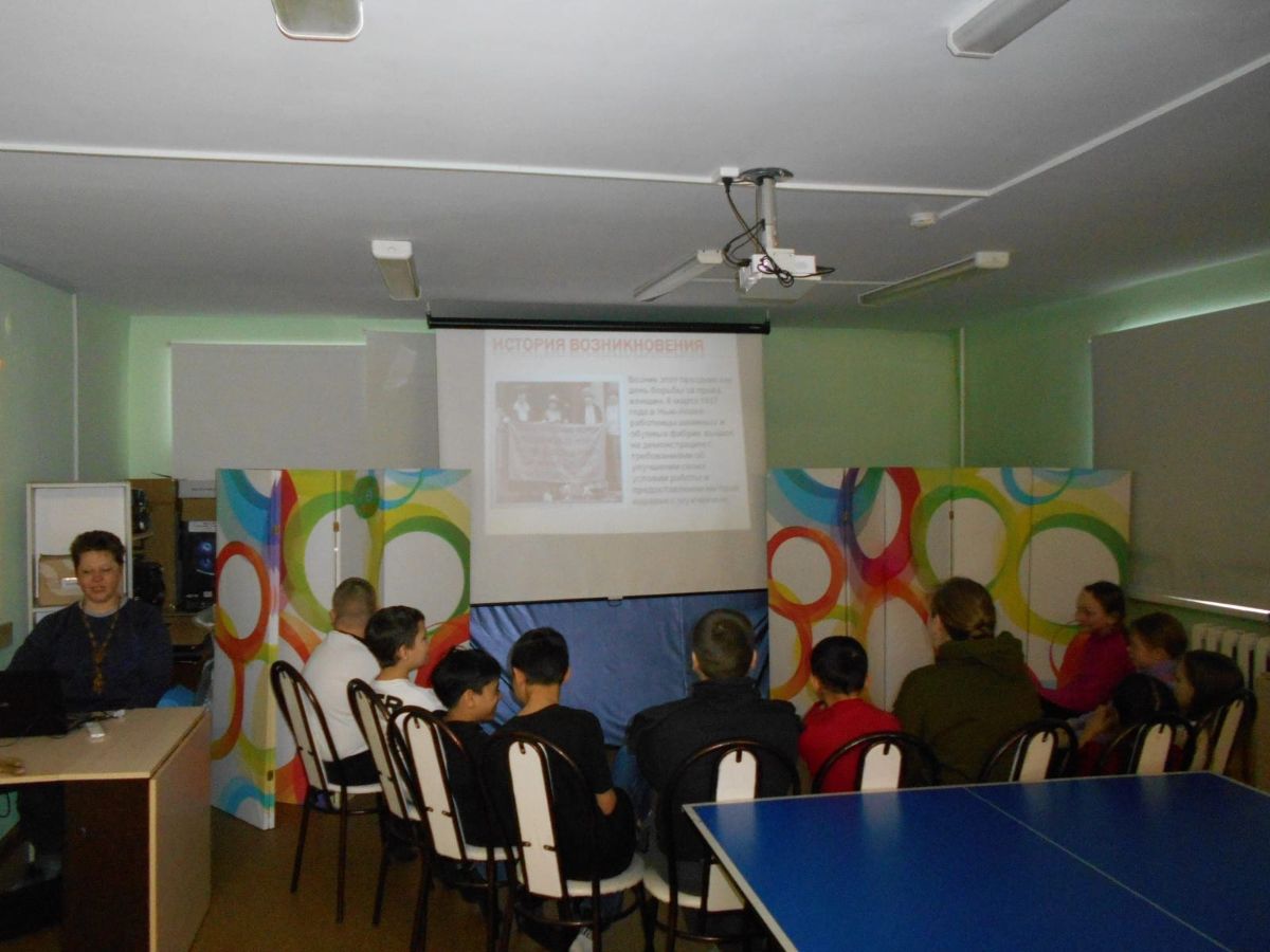 Совсем недавно вся страна встречала дивный праздник весны и красоты – Международный женский день. О том, как возник этот день и почему он нам так дорог, ребятам из дворового клуба «Сказ» рассказала Татьяна Анатольевна, сотрудник Городской библиотеки №9, в историко-познавательном калейдоскопе под названием «Число восьмое – не простое!». Юные слушатели узнали, что некогда этот день был символом борьбы женщин за свои права.