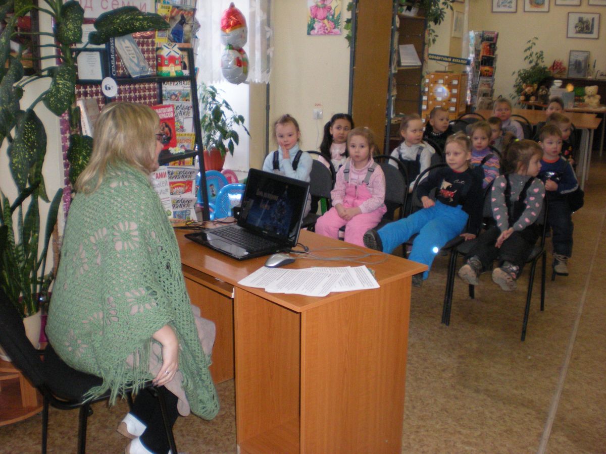 В читальном зале Городской библиотеки №9 сотрудник абонемента, Новикова Екатерина Петровна, для детей детских садов города провела познавательное мероприятие «День рождения ёлочки».
