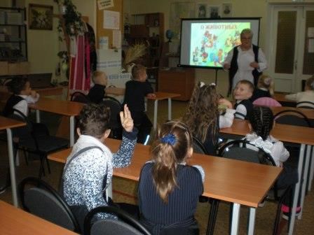 В читальном зале Городской библиотеки №9 для ребят группы продленного дня тринадцатой школы прошло познавательное мероприятие о сказках и животных.