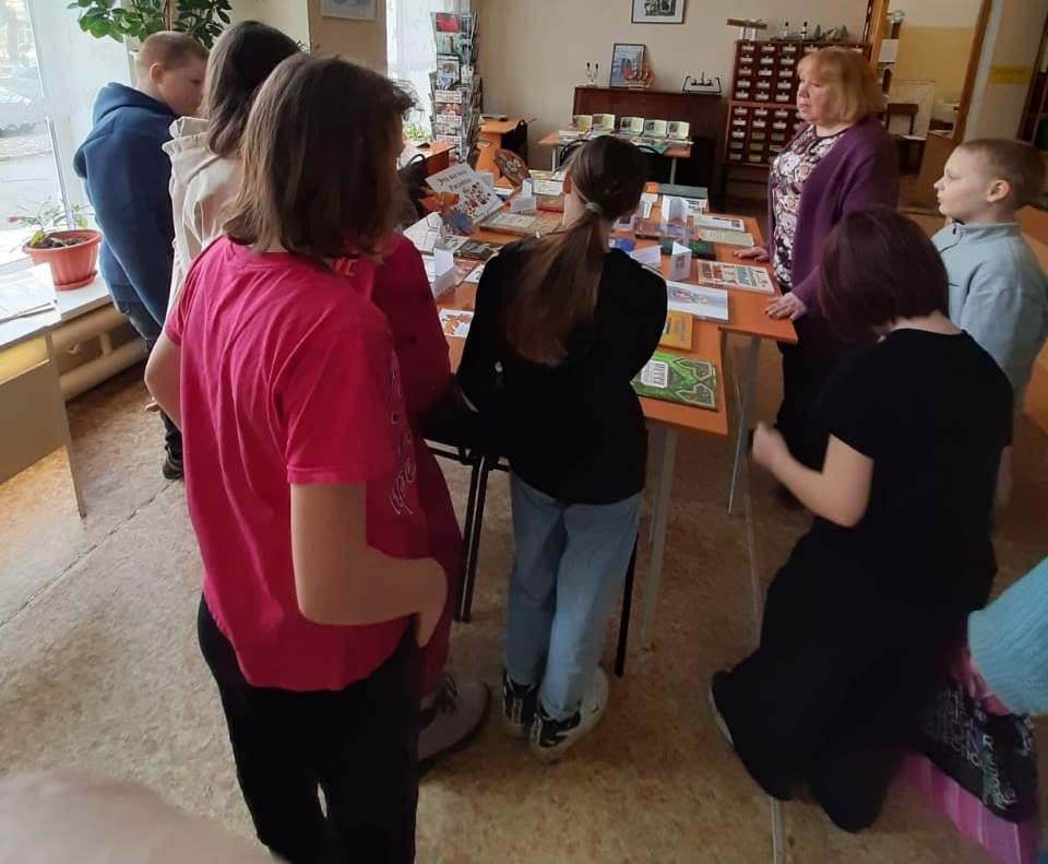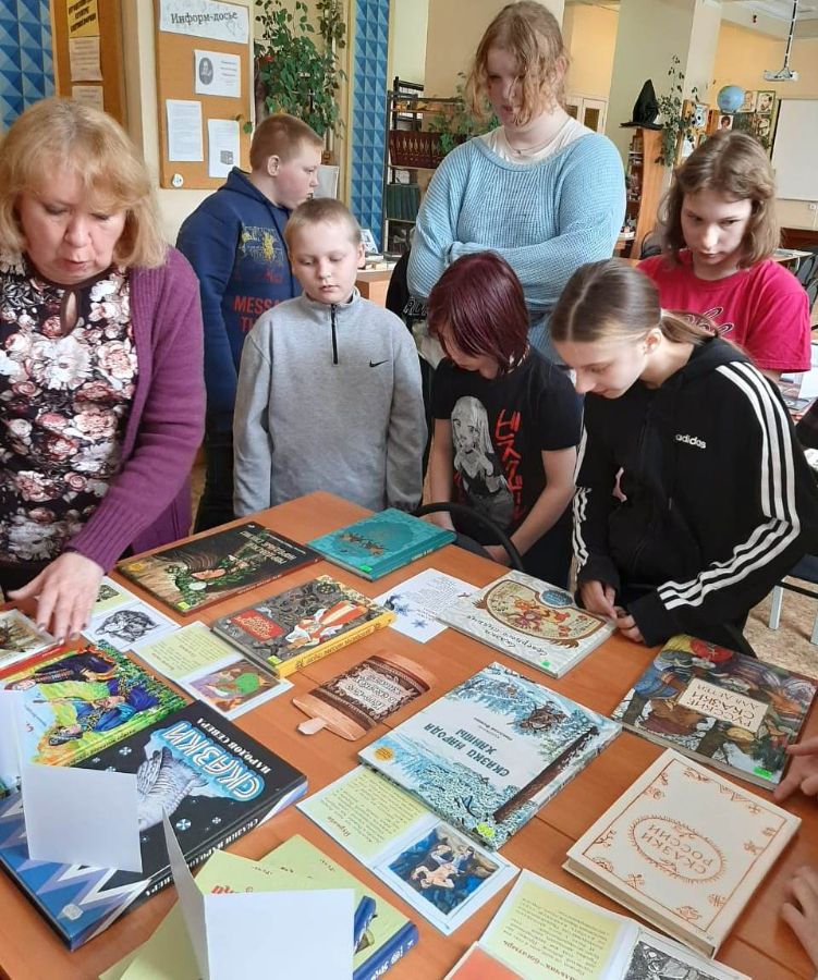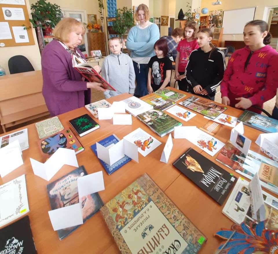 Библиограф Городской библиотеки №9, Кузнецова Марина Генриховна, для ребят коррекционной школы провела обзор книг выездной книжной выставки «Это все наше, Российское» из Свердловской областной библиотеки для детей и молодёжи имени В. П. Крапивина.