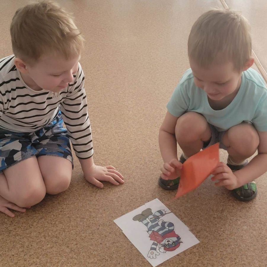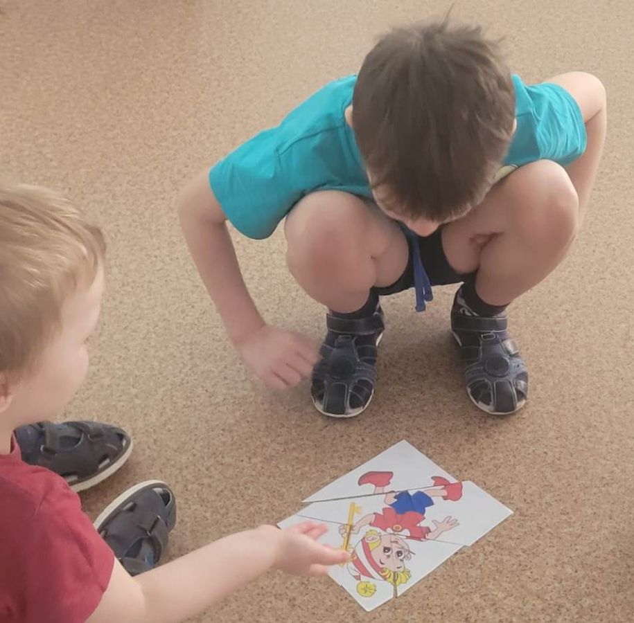 Вместе с ребятами они собирали паззлы с героями сказок. В конце смотрели мультфильм «Три кота» серия - библиотека.