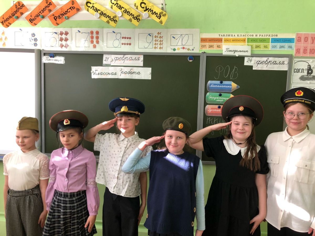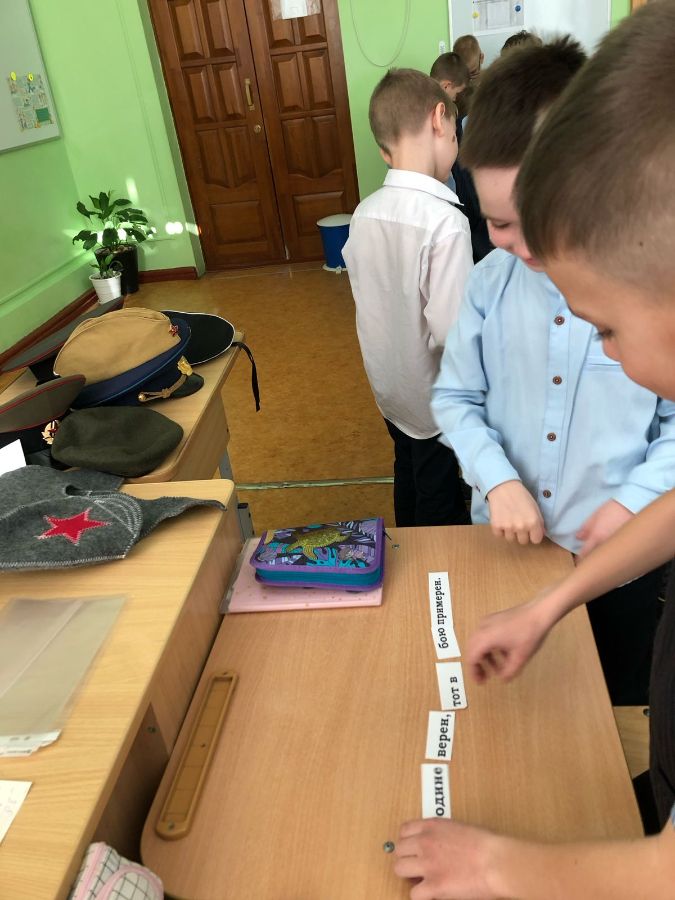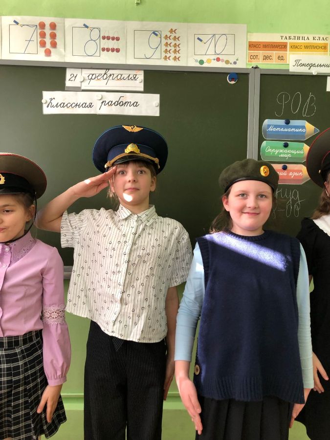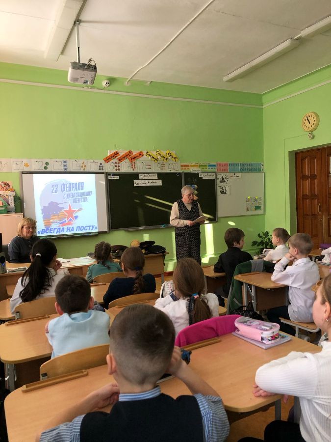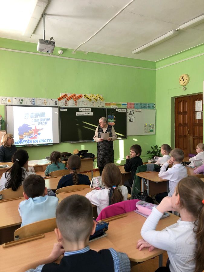 В преддверии Дня защитника Отечества сотрудниками Городской библиотеки №9 Мариной Гурамовной Калатози и Екатериной Петровной Новиковой для учащихся 3 класса школы №13 было проведено информационно - игровой мероприятие "Есть такая профессия - Родину защищать!". В сопровождении яркой презентации, сотрудники библиотеки рассказали ребятам о том, как и когда появился праздник. Ребята познакомились с родами войск, военной техникой, военной формой, с удовольствием участвовали в конкурсах: собери пословицу, назови военную профессию, отвечали на вопросы военной тематики в "Блиц-опросе".Большой интерес вызвали у ребят головные уборы военных, которые можно было примерить. Все остались очень довольны. После мероприятия ребята признались библиотекарям, что с нетерпением будут ждать новых встреч.