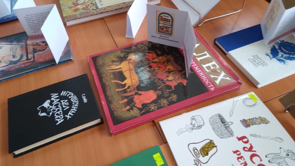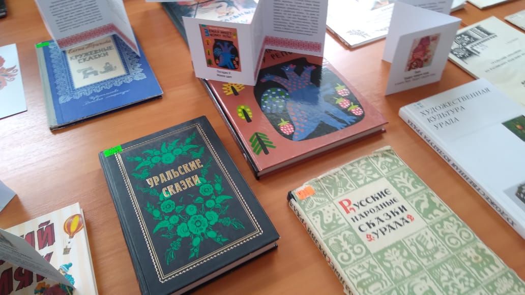 На выставке представлены научно-популярные труды о народном творчестве и промыслах Урала, сказки и сборники с пословицами и поговорками разных народов России.