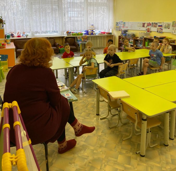 В понедельник для знакомства с группой проведен обзор книг для дошкольников, беседа о том, чем сказка отличается от энциклопедии, какие еще бывают книги (для самых маленьких, учебники, энциклопедии). Ребята разгадывали загадки и вспоминали пословицы. Разогрев фантазию, перешли к главному моменту мероприятия, которое называлось "Пишем книгу". Библиотекарь читал вслух сказку, на кульминационном моменте остановился, а дальше ребята придумывали конец сами. Получилось весело!