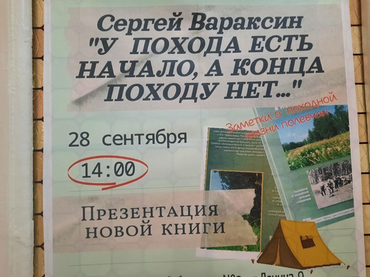 В минувшее воскресенье Городская библиотека №9 стала местом притяжения для любителей истории родного края и активного отдыха. Здесь прошла презентация новой книги Сергея Александровича Вараксина, ветерана Трубного завода и известного поисковика. Его труд, получивший название "У похода есть начало, а конца походу нет...", издан в серии "Жизнь замечательных полевчан" издательством "Моя Родина". Книга посвящена истории развития самодеятельного туризма в Полевском и содержит увлекательные рассказы о походах, сплавах, туристических слетах и поисковой работе местных энтузиастов.