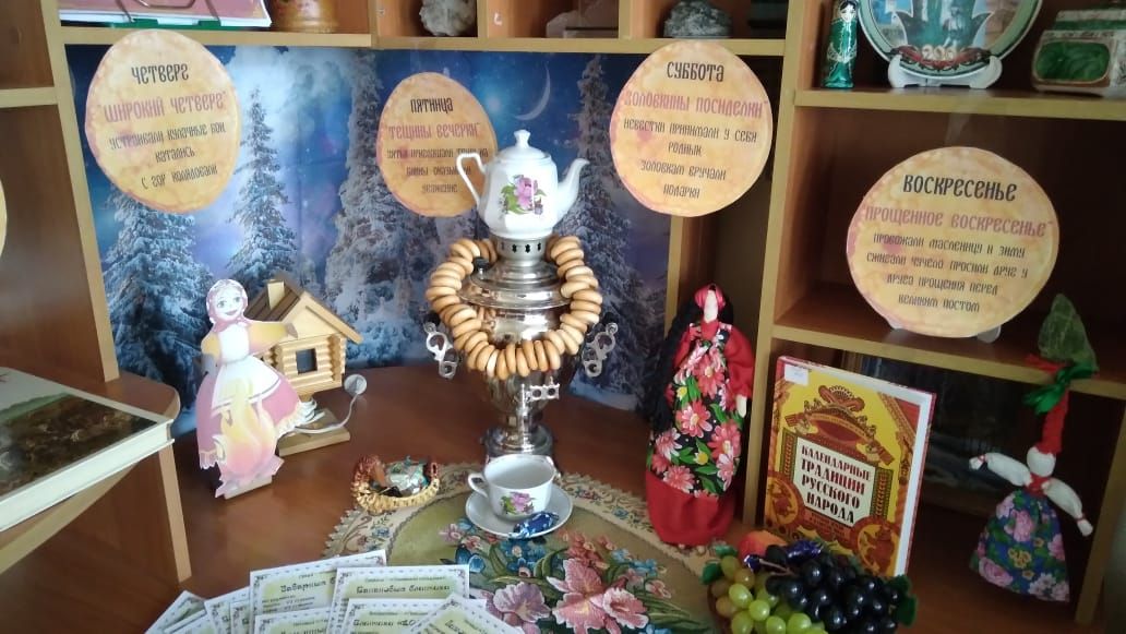 На выставке представлены разнообразные публикации, которые помогут узнать о традициях этого русского праздника. Вы сможете понять, почему он так называется, откуда к нам пришёл и почему в эти дни пекут блины. Кроме того, у вас будет возможность пополнить свои знания пословицами и поговорками о Масленице и даже рецептами блинов.