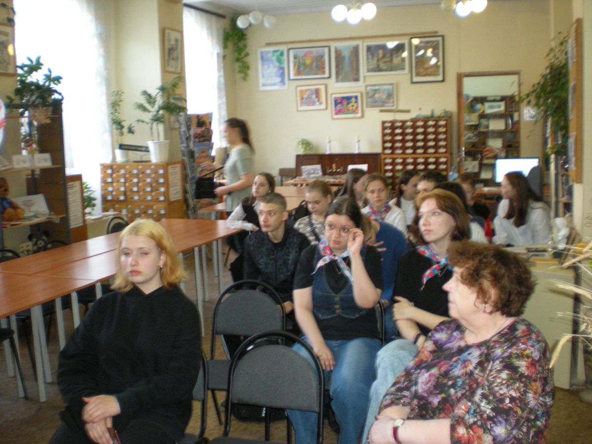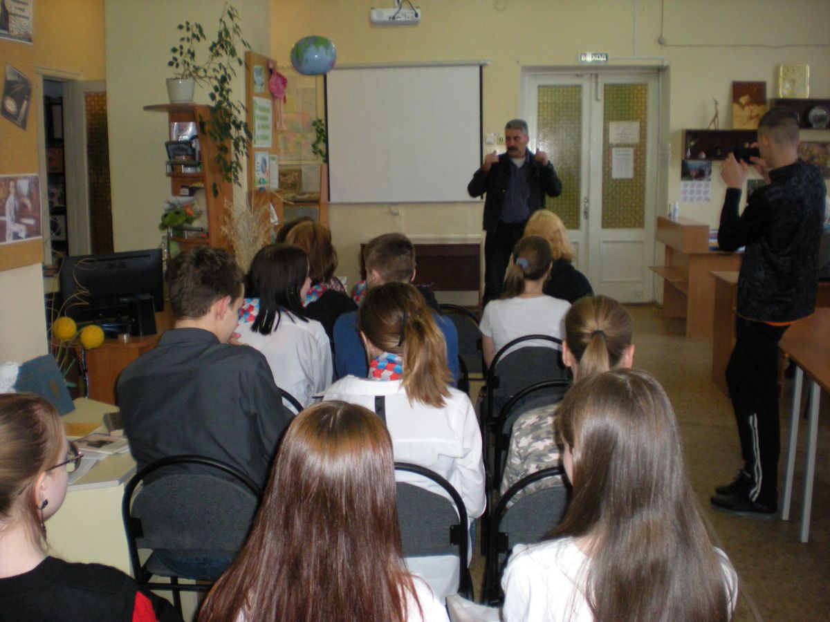 В Городской библиотеке №9 сегодня многолюдно. Группа жизнерадостных молодых людей и веселых девушек под руководством Эльмиры Геннадьевны Самохиной, педагога дополнительного образования ЦРТ им. П.П. Бажова приехала к нам на мастер-класс по фото и видео репортажной съёмке, который даёт Александр Владимирович Полищук, сотрудник УССОВ пресс-службы ПАО СТЗ.