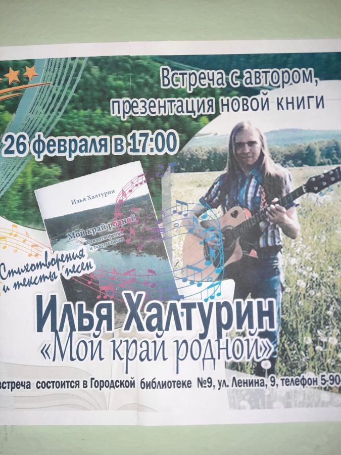 26 февраля, в день рождения автора, в библиотеке состоялась презентация сборника стихов "Мой край родной" Ильи Халтурина.