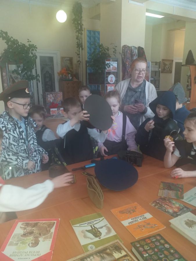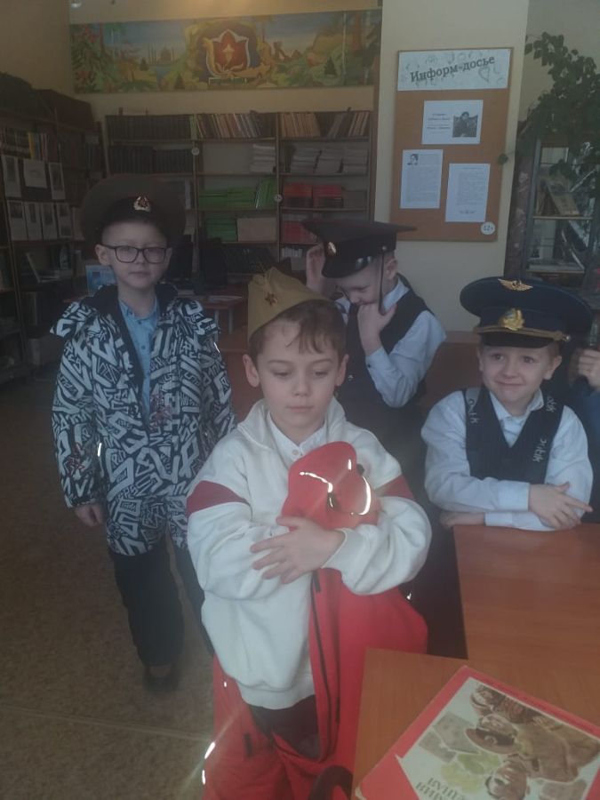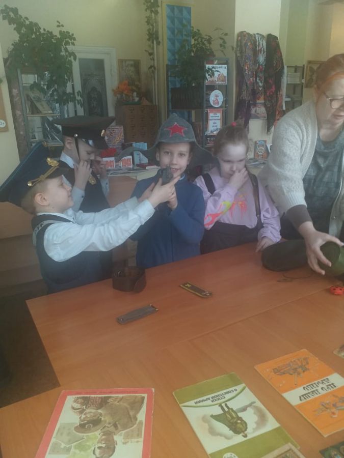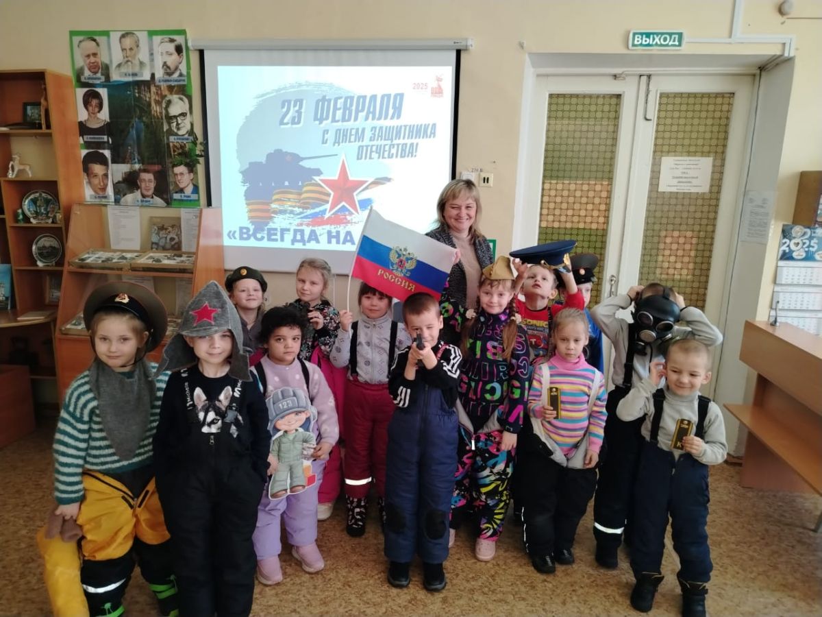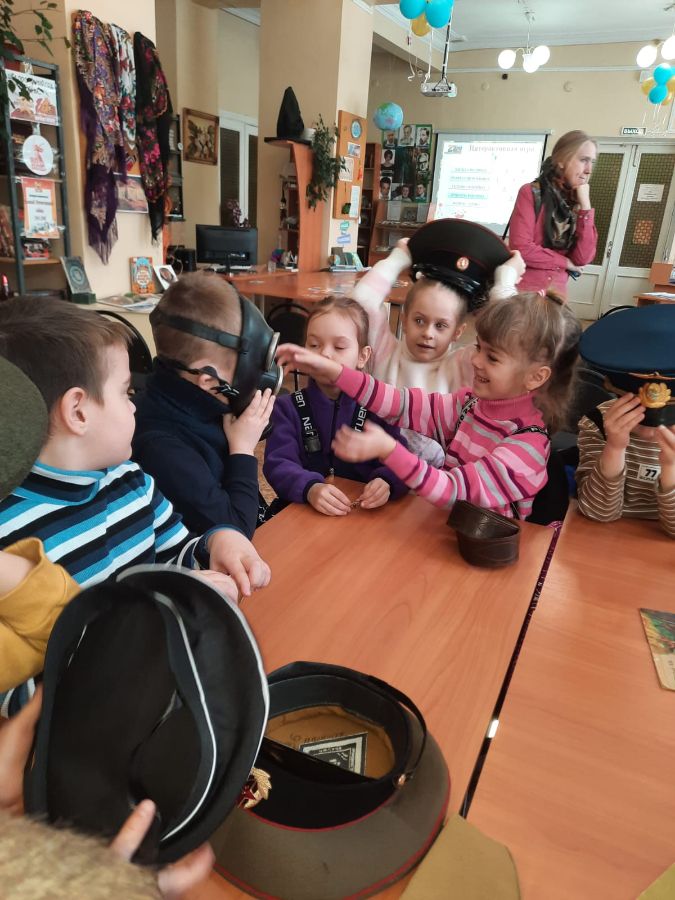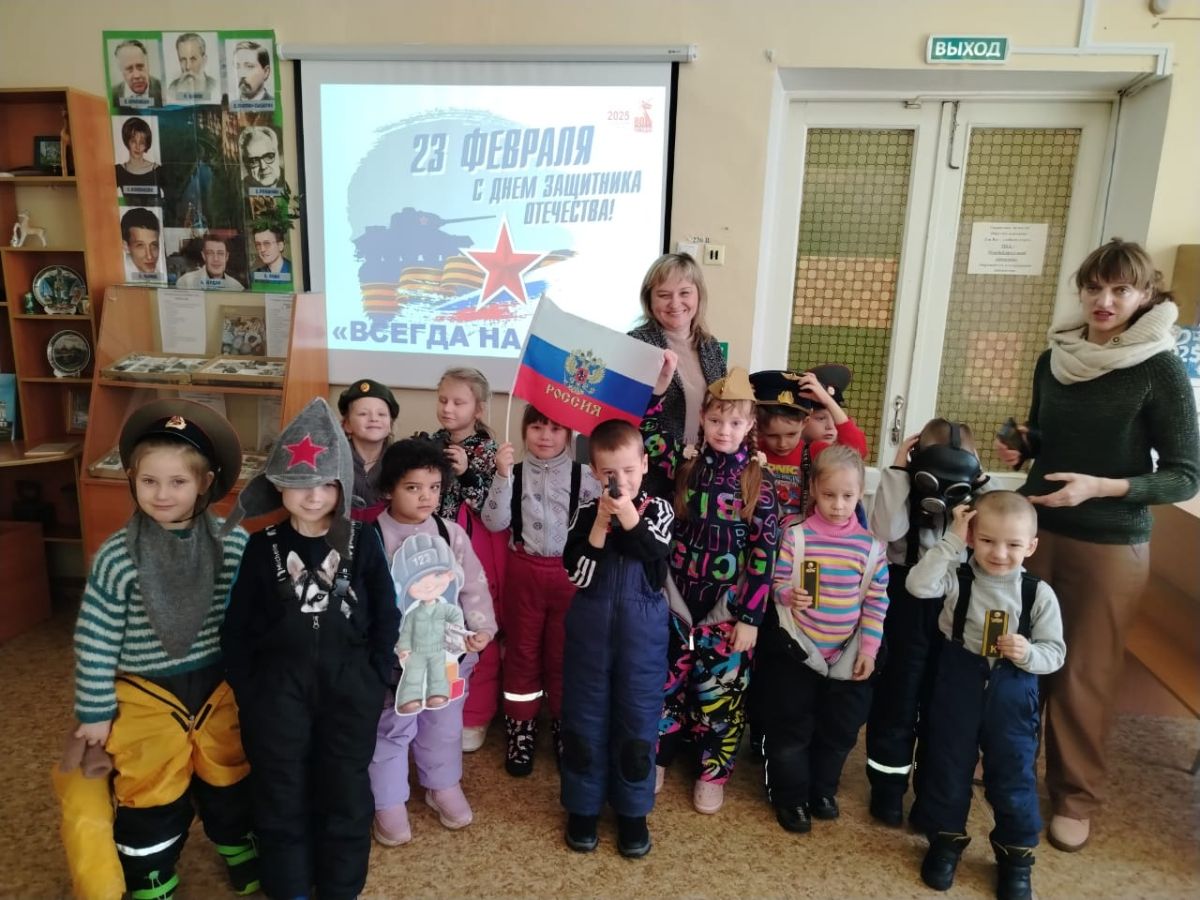 В библиотеке интересно всё: ребята участвуют в викторинах, играют, собирают паззлы, посвященные нашей доблестной армии, соотносят карточки с изображением военных и их головных уборов, слушают рассказ, посвященный защитникам Отечества, и смотрят мультфильм о воинской доблести и верности.