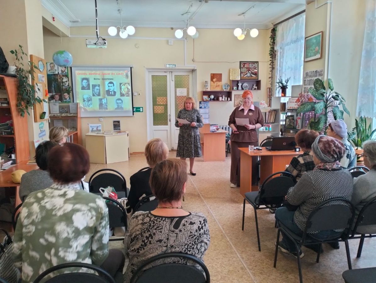 В Городской библиотеке №9 состоялось особенное мероприятие, организованное сотрудниками читального зала для Центра общения старшего поколения. Это был информационно-поэтический час, посвященный памяти и творчеству тех, кто, будучи поэтами, сражался на полях Великой Отечественной войны.