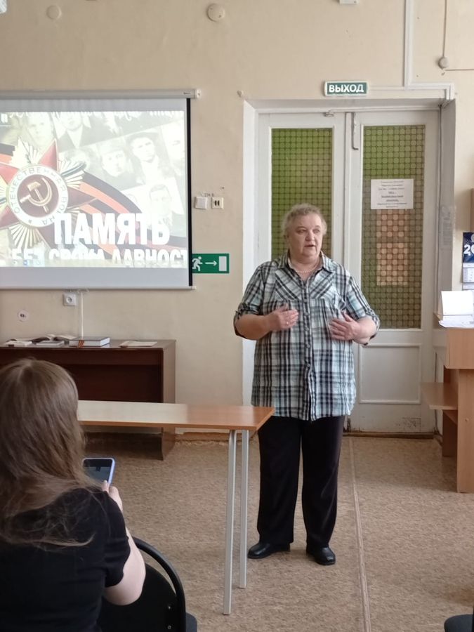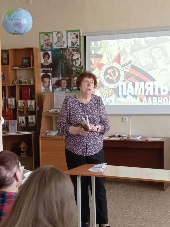 Ветеран культуры Любовь Викторовна Сидорова рассказала о своих родителях – участниках войны. О проекте МБУК ЦБС по созданию электронной книги памяти рассказала библиотекарь Городской библиотеки №9 Филозопова Татьяна Анатольевна.