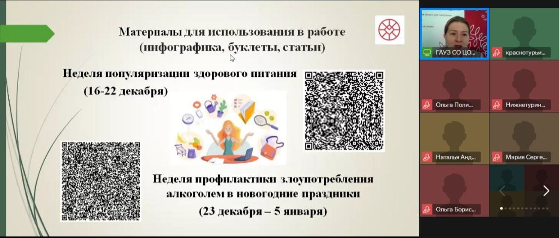 врач по общей гигиене, заведующий отделом разработки, реализации и мониторинга корпоративных программ укрепления здоровья ГАУЗ СО «ЦОЗМП» Максименко Светлана Валерьевна с темой «Новогодний стол без последствий»;