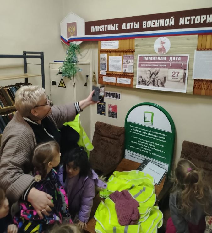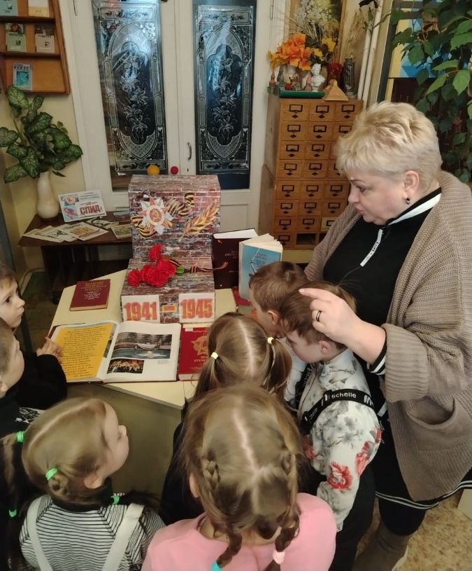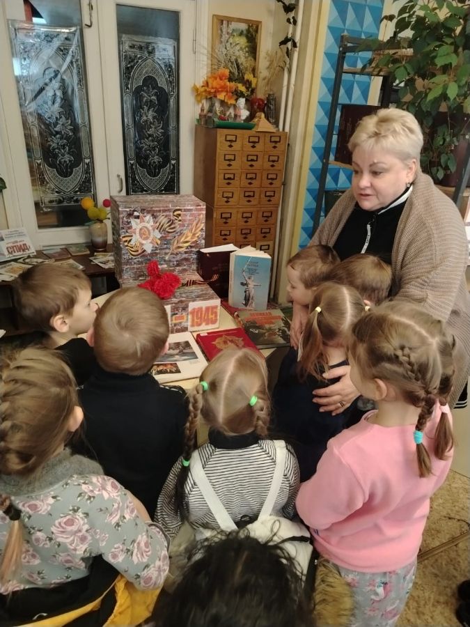 Библиотекарь Зоя Ефремовна Борисова рассказала ребятишкам о том, что такое блокада, как жители осаждённого города боролись и выживали в течение долгих девятисот дней, страдая от голода, холода и бомбёжек. Но город выстоял и не сдался врагу, несмотря на все трудности. Мы помним и чтим великий подвиг защитников Ленинграда!
