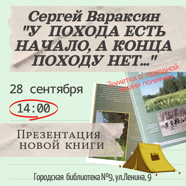 В воскресенье, 28 сентября, всех, кто не представляет свою жизнь без движения и приключений, ждет особенное событие. В Полевском состоится презентация новой книги нашего земляка, Сергея Вараксина, под названием "У похода есть начало, а конца походу нет...".
