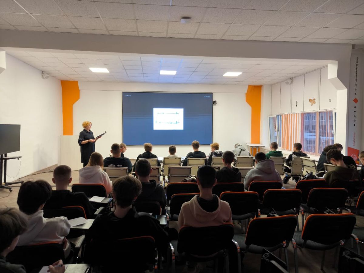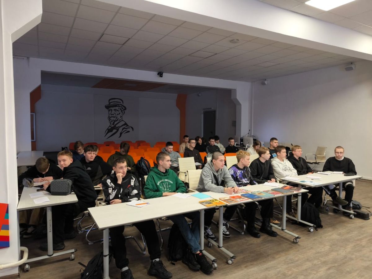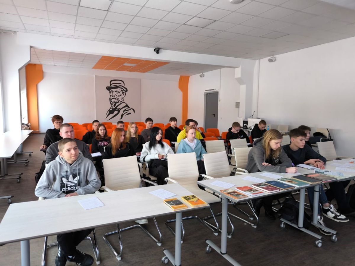 Студенты услышали выступление по истории промышленного предприятия и посмотрели отрывки из фильмов с интересными фактами о заводе, его значимости для экономики региона и страны в целом. А книги с развернутой книжной выставки помогли сделать мероприятие информативнее)
