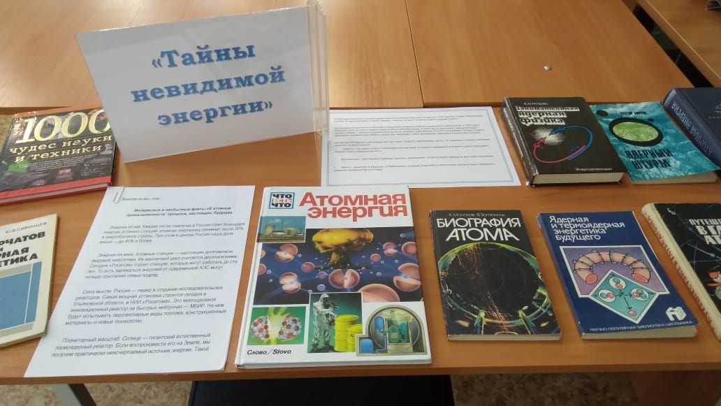 На выставке посетители смогут ознакомиться с литературой, рассказывающей об изобретениях, истории атомной энергетики и выдающихся ученых-ядерщиках.