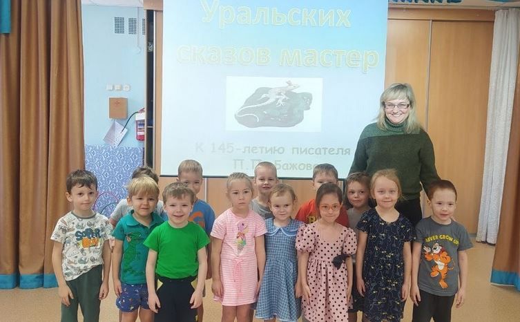 Екатерина Петровна рассказала детям биографию писателя, провела викторину, ознакомила детей с памятными местами посвящённые П. П. Бажову, и в завершении дети с удовольствием посмотрели мультфильм "Огневушка Поскакушка".