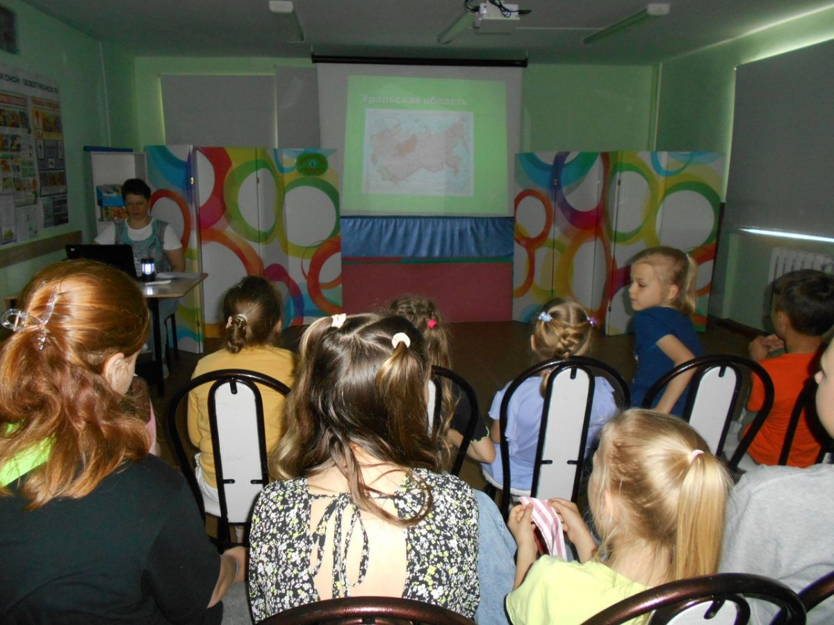 Городская библиотека №9 провела для ребят в дворовом клубе «Сказ» исторический час «Опорный край державы» посвященный 90-летию Свердловской области.