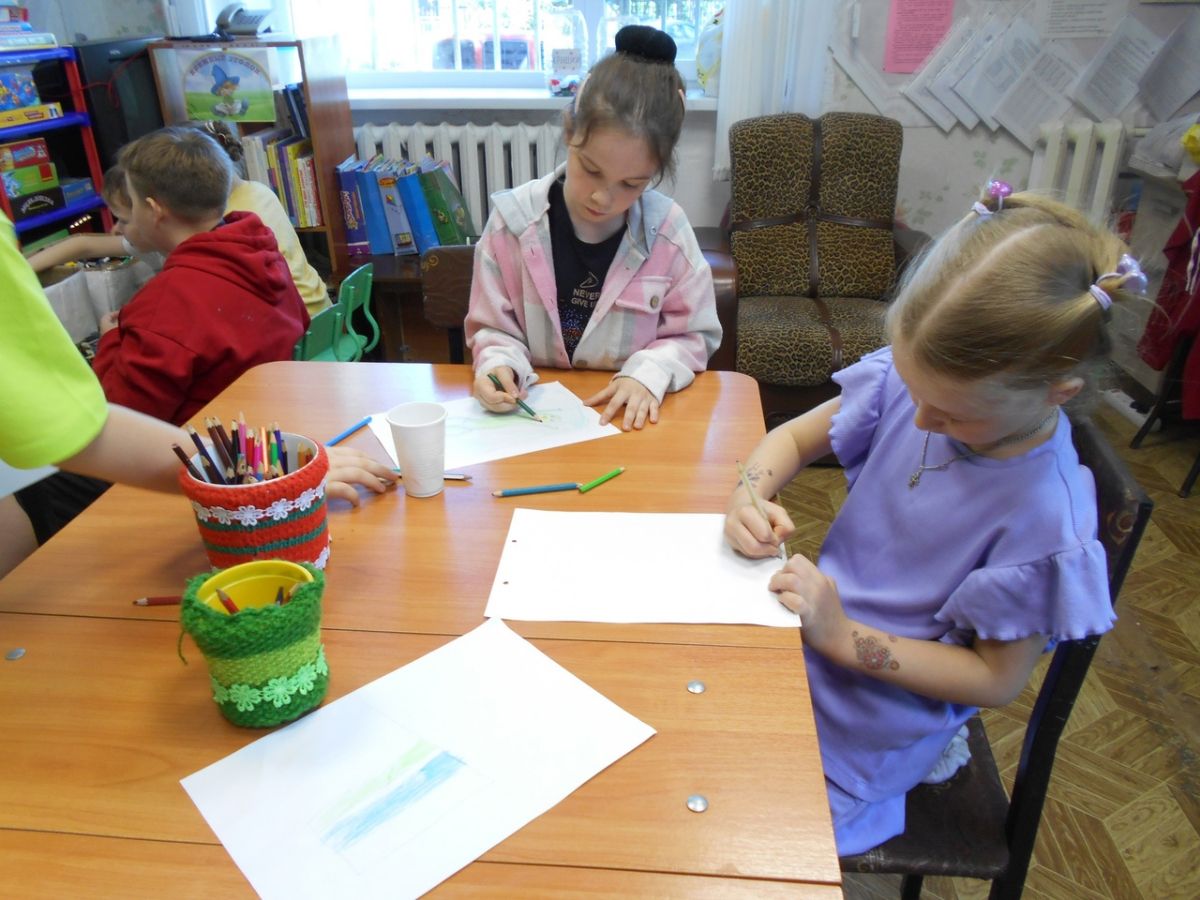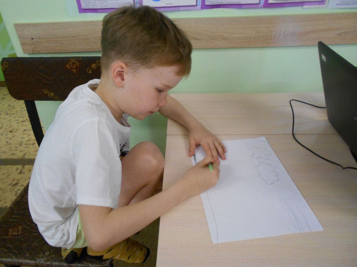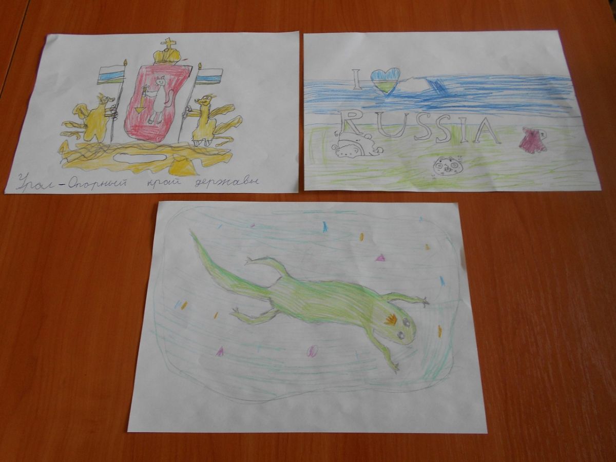 Затем ребята ответили на вопросы викторины, посмотрели мультфильм «Урал-опорный край державы» и воодушевленные пошли рисовать рисунки о прослушанном и увиденном, кто-то на листочке, на асфальте.