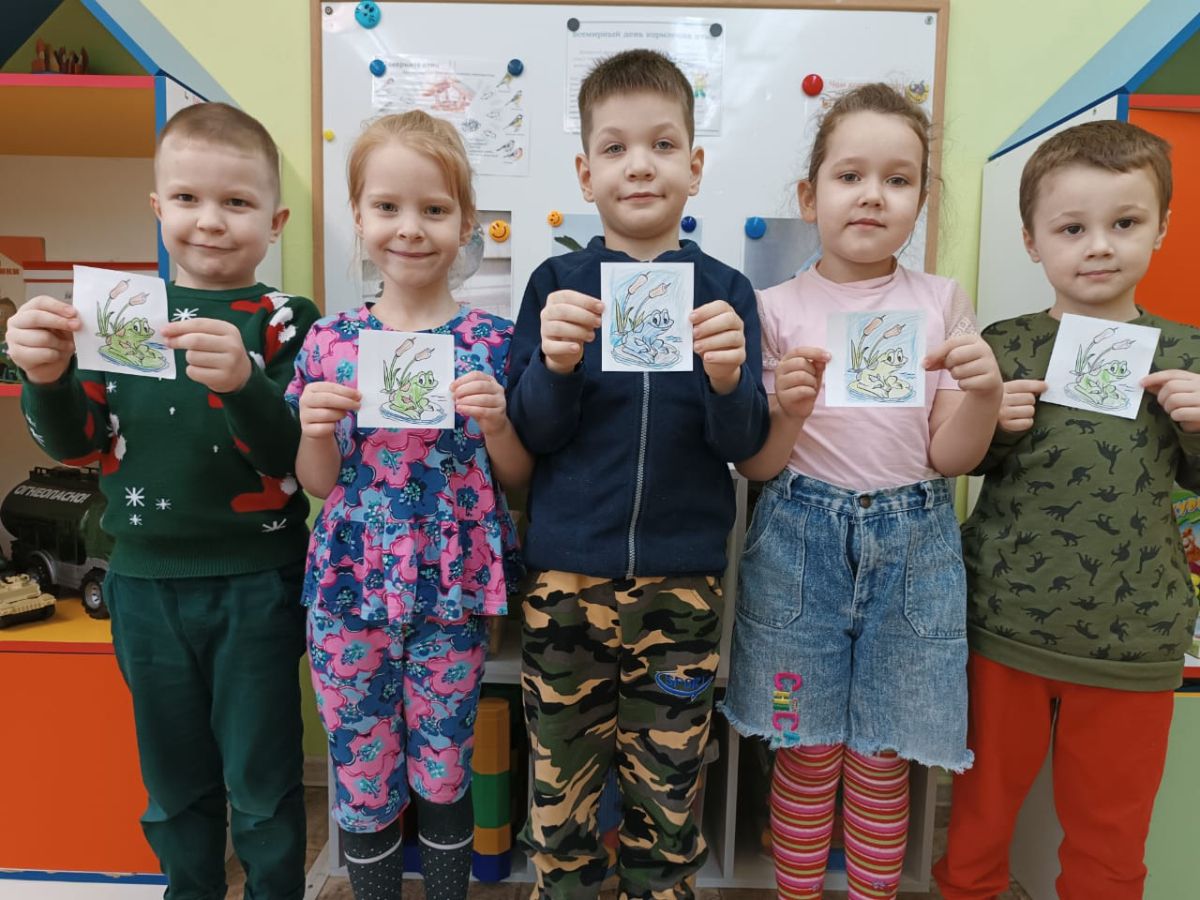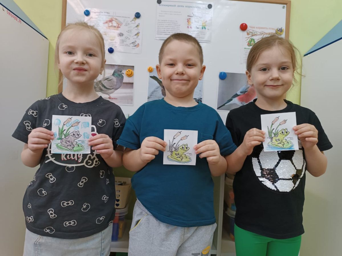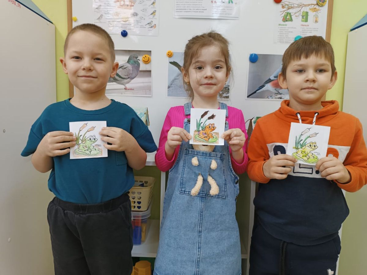 Произведения этого автора добрые и серьезные одновременно. Они учат бережному отношению к живой природе. По рассказу Николая Сладкова в 1989 году снят мультипликационный фильм "Мальчик и лягушонок", который представляет собой трагикомическую историю Лягушонка, извлечённого из болота сердобольным мальчиком и едва им не загубленного. Этот мультфильм завершал мероприятие. Ребятишки очень внимательно его смотрели, и все поняли, что не нужно переносить домой животных из их привычной среды. С собой ребятки получили раскраски с изображением лягушонка. Из детского сада №34 "Алёнушка" (Ленина, 22А) мы получили обратную связь - фотографии ребят с получившимися рисунками. Как аккуратно постарались детки раскрасить рисунки и ,посмотрите, какие разные лягушата вышли из-под их волшебных карандашей! Большое спасибо детям и их замечательным воспитателям!