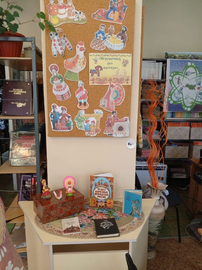 В читальном зале Городской библиотеки № 9 открылась выставка «Игрушечных дел мастера». Она посвящена дымковской игрушке — яркому символу вятской культуры.